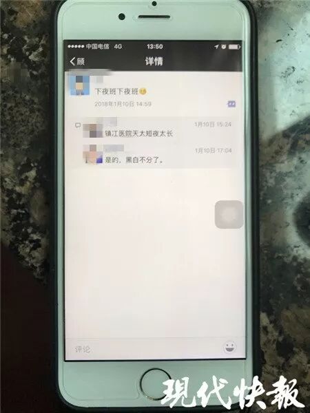 小顾出事后,同学整理了他的朋友圈,其中在 2018 年 1 月 10 日," 下夜班,下夜班 " 小顾发了一个瞌睡的表情,时间是当天 14 点 59 分。
